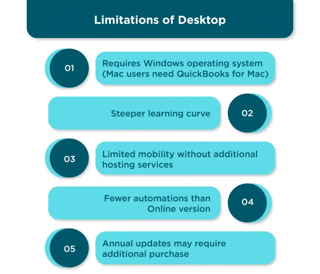 - Requires Windows operating system (Mac users need QuickBooks for Mac)